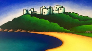 Artist painting landscapes using bright bold acrylics. Paintings and prints of Welsh locations available.
