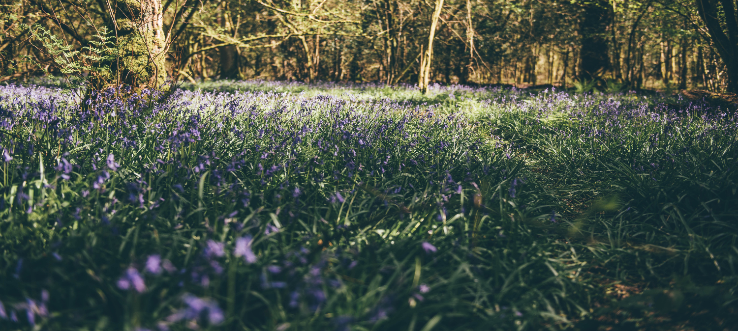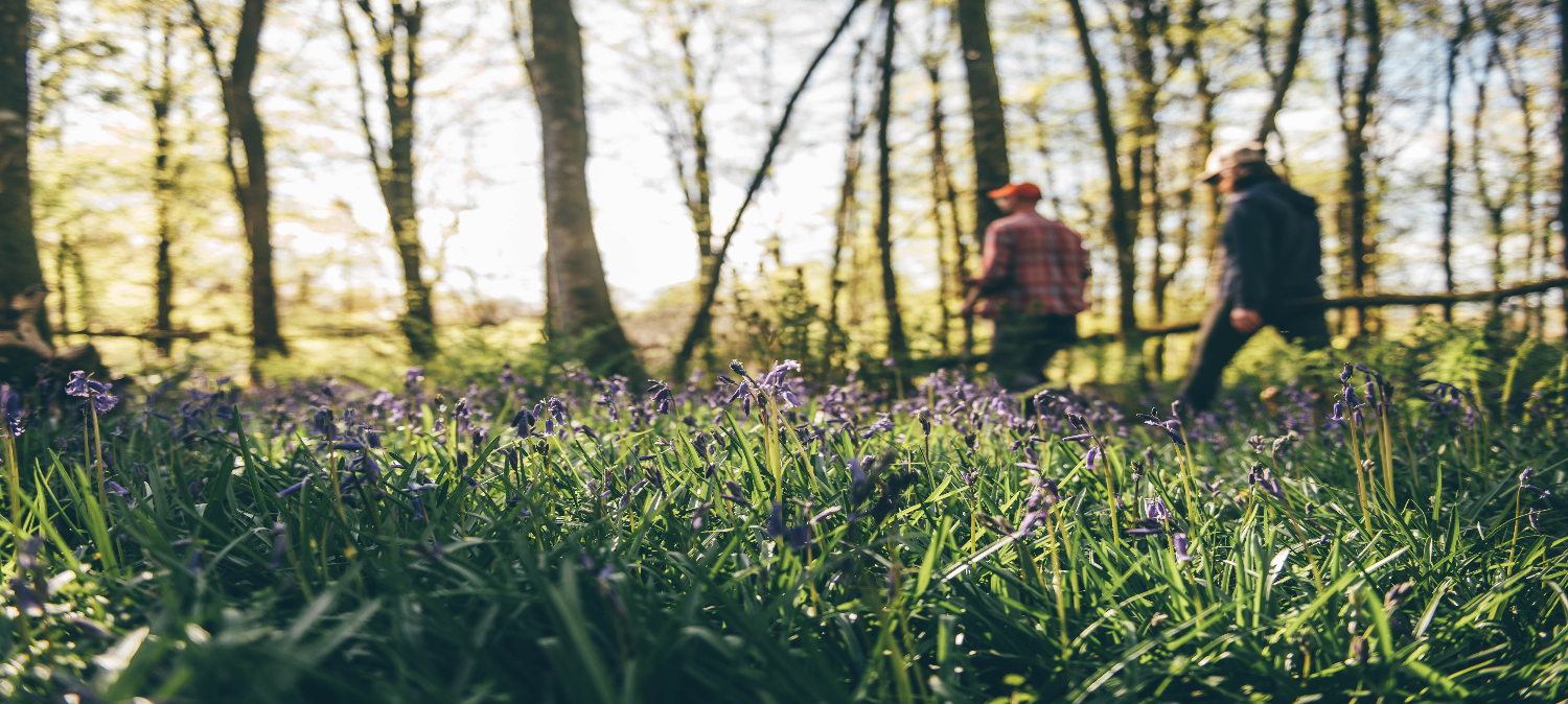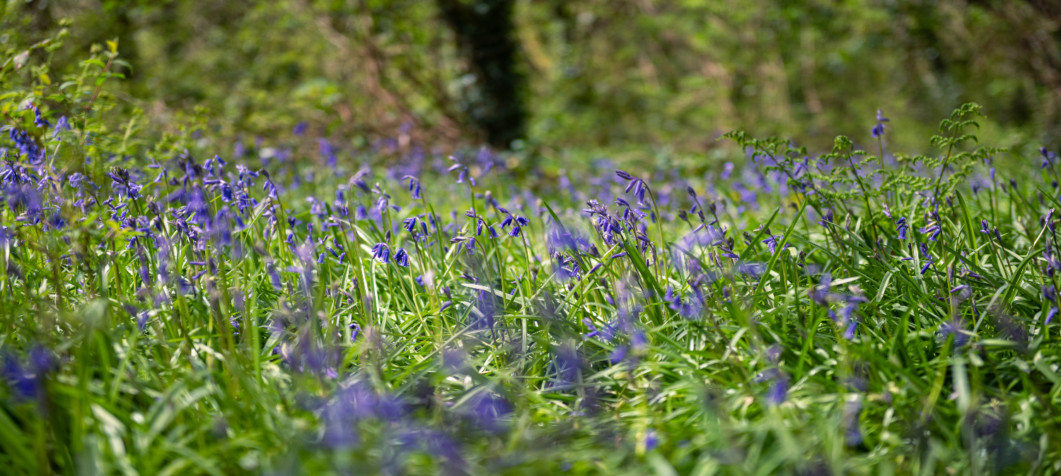 Wrth i chi grwydro, fe welwch ddigonedd o glychau'r gog, ynghyd â digon o fflora a ffawna gwanwynol eraill sy'n lliwio'r tir a'u sawr hyfryd yn llenwi'r awyr.